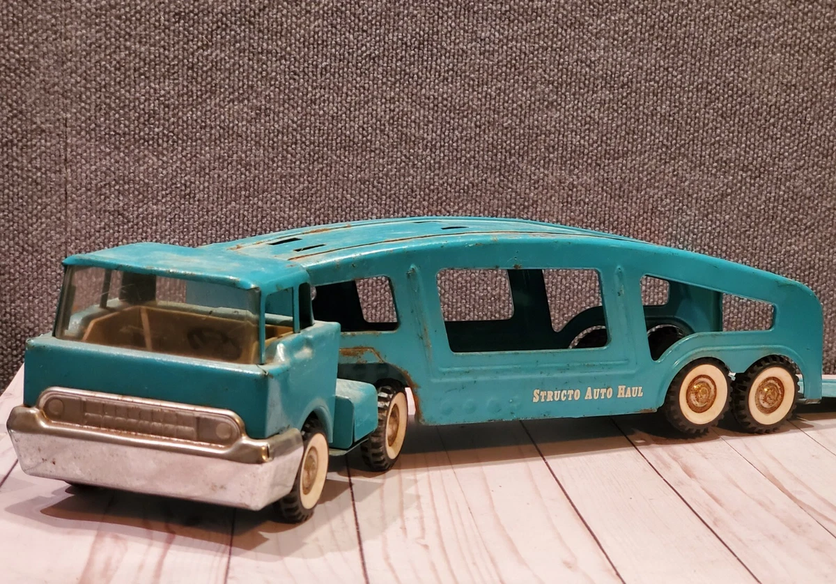 Vintage Structo Auto Hauler Ramp Truck Car Carrier Pressed Steel Turquoise Ebay
